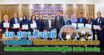 ผอ.สกร.ปัตตานี มอบวุฒิบัตรในโครงการพัฒนาศักยภาพบุคลากรเพื่อเพิ่มทักษะกระบวนการจัดการเรียนรู้ด้วย Active Learning สกร.อำเภอหนองจิก
