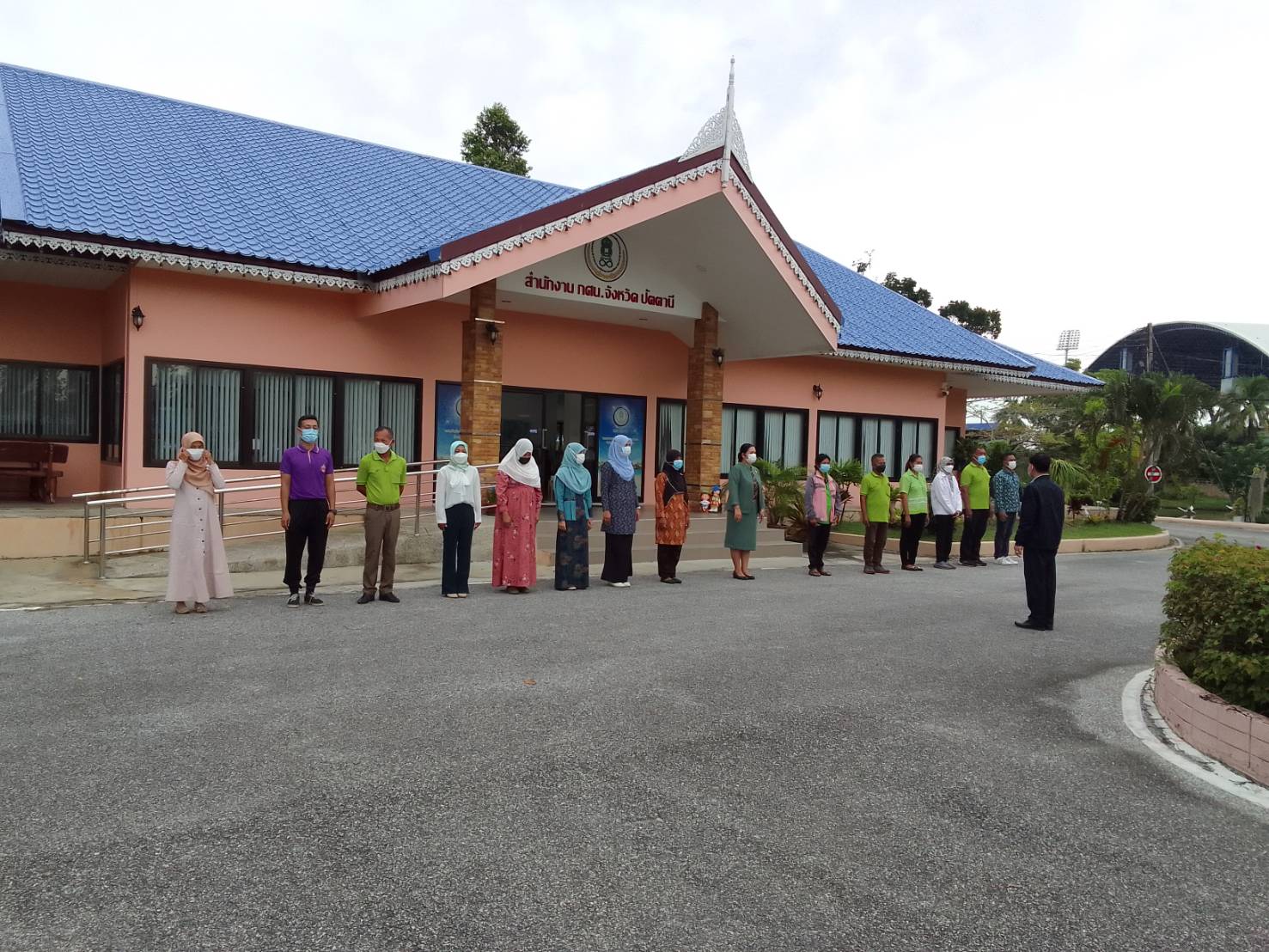 วันพุธที่ 9 พฤศจิกายน 2565 เวลา 08.00 น. นายอุดร สิทธิพาที ผู้อำนวยการสำนักงาน กศน.จังหวัดปัตตานี พร้อมด้วยข้าราชการและบุคลากรในสังกัด ร่วมกิจกรรมเข้าแถวเคารพธงชาติ รับมอบนโยบาย กิจกรรม และข่าวสารข้อมูล ในการเตรียมความพร้อมก่อนปฏิบัติงานประจำวัน เพื่อแสดงออกถึงความรักชาติ ศาสนา พระมหากษัตริย์ เสริมสร้างค่านิยมและเป็นแบบอย่างที่ดีขององค์กร ณ บริเวณหน้าอาคารสำนักงาน กศน.จังหวัดปัตตานี
