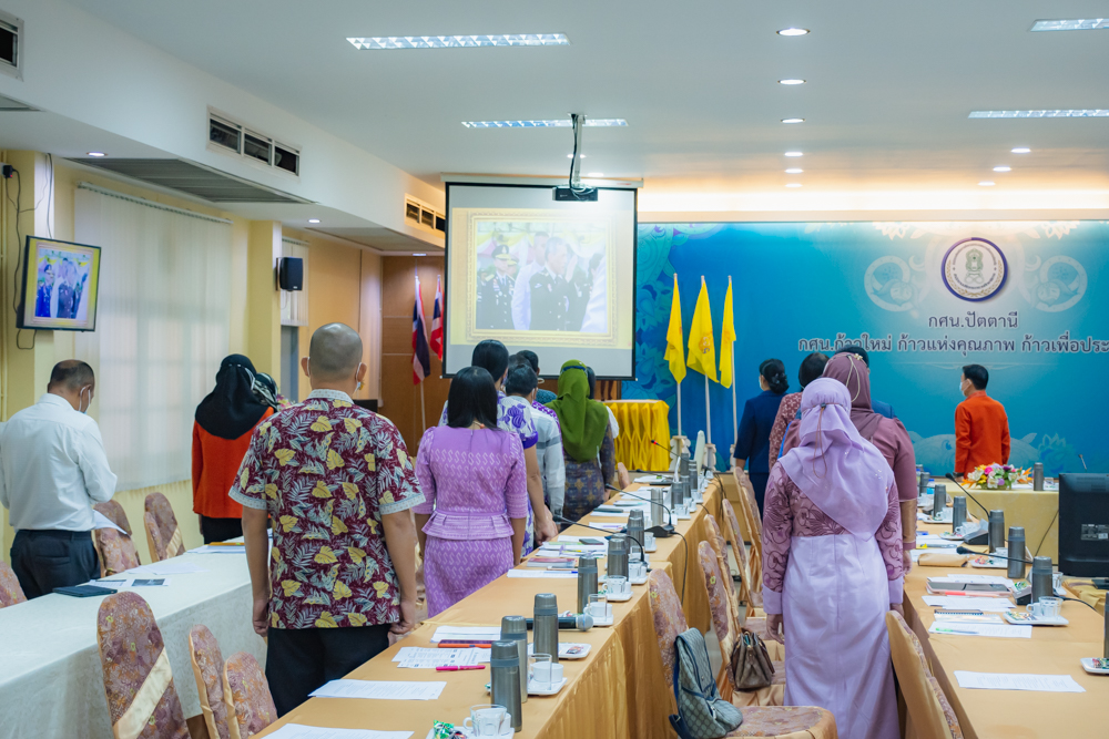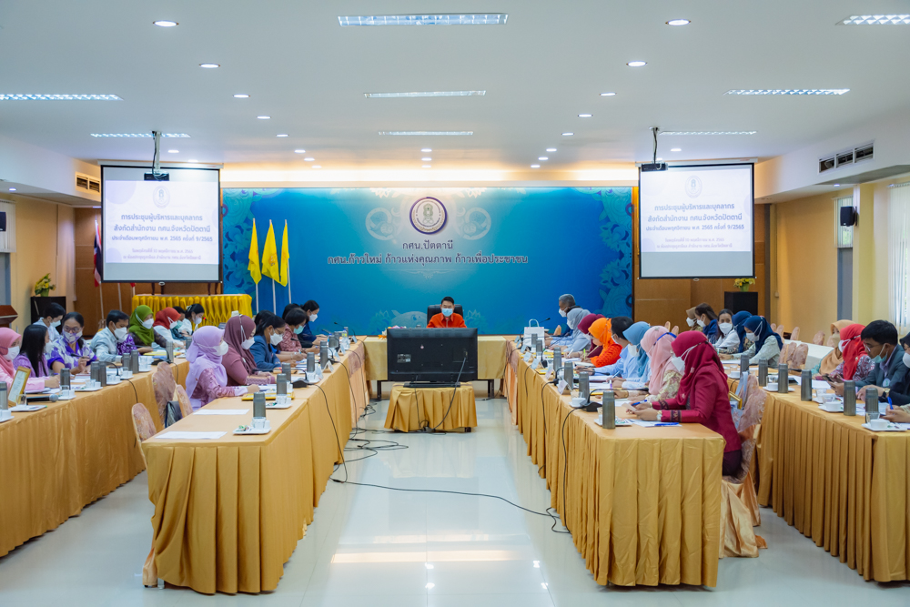 วันพฤหัสบดีที่ 10 พฤศจิกายน พ.ศ. 2565 เวลา 09.30 น. สำนักงาน กศน.จังหวัดปัตตานี จัดประชุมผู้บริหาร และบุคลากร ประจำเดือน พฤศจิกายน ครั้งที่ 9/2565 ณ ห้องประชุมรูสะมิแล สำนักงาน กศน.จังหวัดปัตตานี มีนายอุดร สิทธิพาที ผู้อำนวยการสำนักงาน กศน.จังหวัดปัตตานี เป็นประธานการประชุม ผู้เข้าร่วมประชุมประกอบด้วยผู้บริหาร และข้าราชการ กศน.อำเภอ ทั้ง12 อำเภอ ก่อนเริ่มประชุมมีกิจกรรม มอบเกียรติบัตร องค์กรนักศึกษาที่มีผลการประเมินการดำเนินงาน ประจำปีการศึกษา 2564 ด้วย (สามารถดาวน์โหลดภาพถ่ายได้ที่นี่)