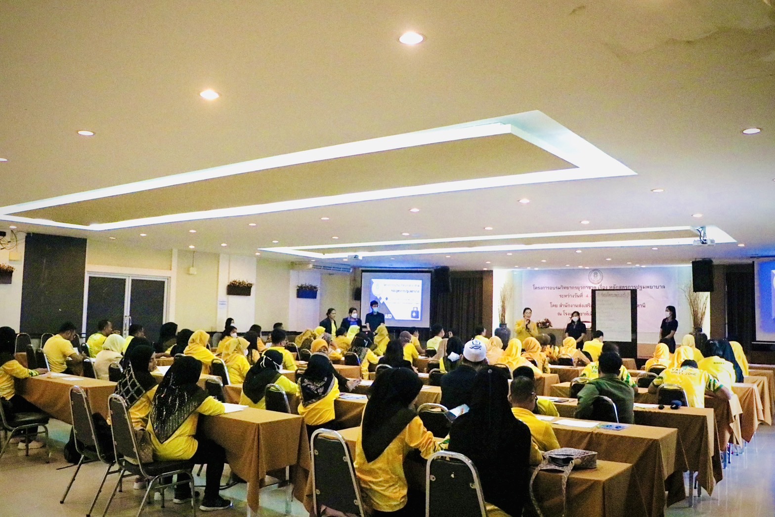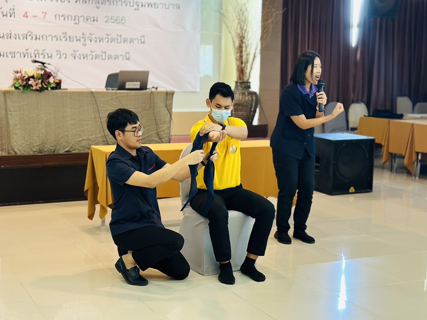 วันอังคารที่ 4 กรกฎาคม พ.ศ. 2566 เวลา 09.30 น. นายอุดร สิทธิพาที ผู้อำนวยการสำนักงาน กศน.จังหวัดปัตตานี ปฏิบัติหน้าที่ผู้อำนวยการสำนักงานส่งเสริมการเรียนรู้จังหวัดปัตตานี ได้รับมอบหมายจากนางพาตีเมาะ สะดียามู ผู้ว่าราชการจังหวัดปัตตานี นายกเหล่ากาชาดจังหวัดปัตตานี ให้เป็นประธานในพิธีเปิดโครงการอบรมวิทยากรยุวกาชาด เรื่อง หลักสูตรการปฐมพยาบาล ระหว่างวันที่ 4-7 กรกฎาคม พ.ศ. 2566 โดยมี นางสุทิศา ซุ่นคง รองผู้อำนวยการสำนักงาน กศน.จังหวัดปัตตานี ปฏิบัติหน้าที่รองผู้อำนวยการสำนักงานส่งเสริมการเรียนรู้จังหวัดปัตตานี กล่าวรายงาน และมี นางวธูสิริ สวัสดิ์จุ้น หัวหน้าฝ่ายพัฒนายุวกาชาดและอาสาสมัครกาชาด สำนักงานยุวกาชาดและอาสาสมัครกาชาด พร้อมคณะฯ เป็นวิทยากร กลุ่มหมายประกอบด้วยบุคลากร สำนักงานส่งเสริมการเรียนรู้จังหวัดปัตตานี และครู ศูนย์การเรียนรู้อำเภอ สังกัดสำนักงานส่งเสริมการเรียนรู้จังหวัดปัตตานี เข้าร่วมการอบรม จำนวน 60 คน ณ โรงเเรมเซาท์เทิร์น วิว ปัตตานี อำเภอเมือง จังหวัดปัตตานี