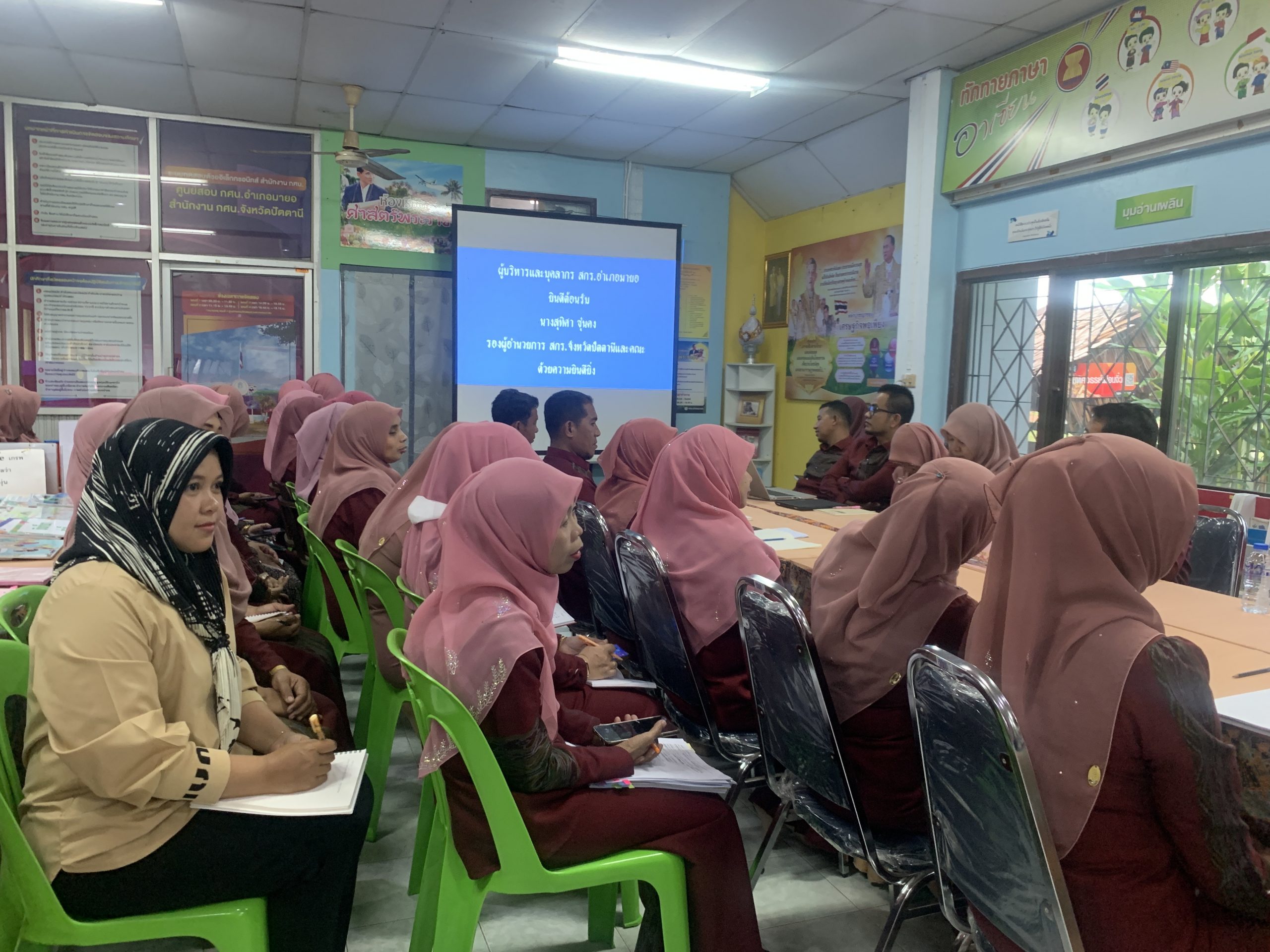 วันอังคาร ที่ 11 กรกฎาคม พ.ศ. 2566 กลุ่มงานนิเทศ ติดตามและประเมินผล สำนักงานส่งเสริมการเรียนรู้จังหวัดปัตตานี นำโดย นางสุทิศา ซุ่นคง รองผู้อำนวยการสำนักงานส่งเสริมการเรียนรู้จังหวัดปัตตานี พร้อมด้วย นางสาวศุภิสรา ราชเพ็ชร นักวิชาการศึกษา ดำเนินการนิเทศ ติดตามผลการดำเนินการจัดการศึกษานอกระบบระดับการศึกษาขั้นพื้นฐาน พุทธศักราช 2551 ประจำปีงบประมาณ พ.ศ. 2566 ณ ศูนย์ส่งเสริมการเรียนรู้อำเภอมายอ เพื่อพัฒนาคุณภาพการจัดการศึกษานอกระบบระดับการศึกษาขั้นพื้นฐาน พุทธศักราช 2551 และเพื่อให้บรรลุเป้าหมายเป็นไปอย่างมีประสิทธิภาพต่อไป