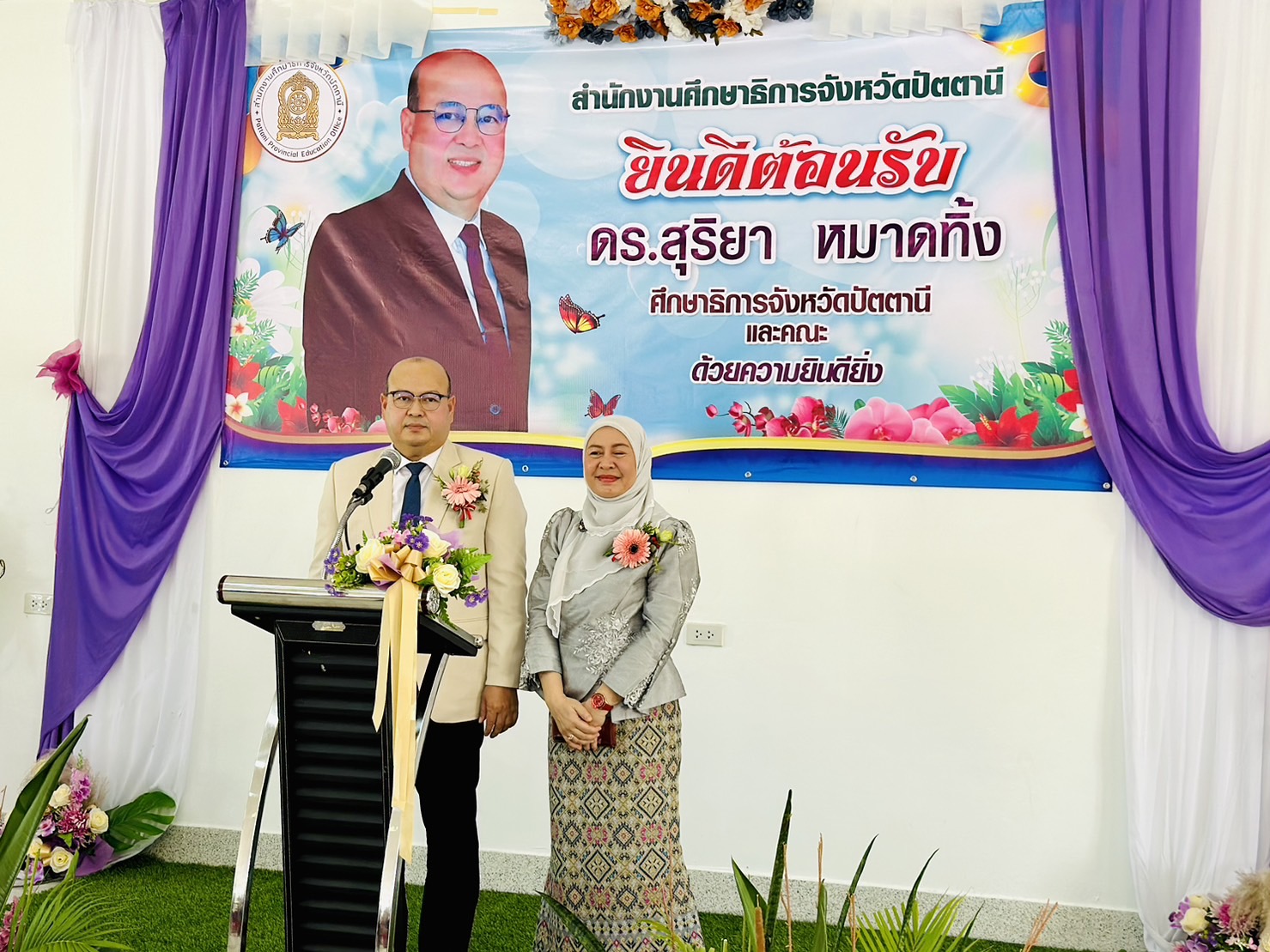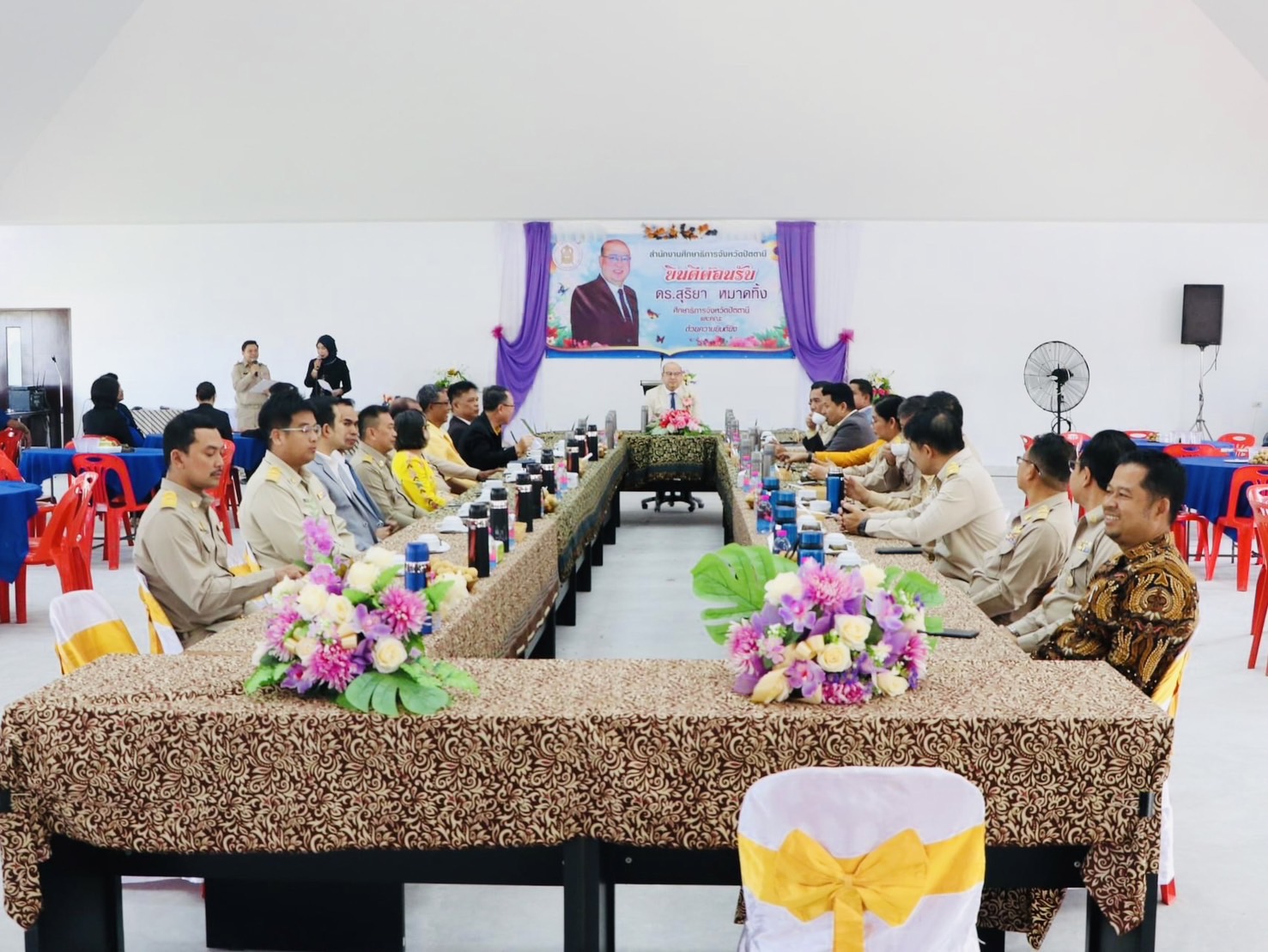 เมื่อวันจันทร์ที่ 9 ตุลาคม พ.ศ. 2566 นางสุทิศา ซุ่นคง รองผู้อำนวยการสำนักงานส่งเสริมการเรียนรู้จังหวัดปัตตานี รักษาการในตำแหน่ง ผู้อำนวยการสำนักงานส่งเสริมการเรียนรู้จังหวัดปัตตานี พร้อมด้วยบุคลากร ร่วมต้อนรับและแสดงความยินดีกับ นายสุริยา หมาดทิ้ง ในโอกาสเข้ารับตำแหน่ง ศึกษาธิการจังหวัดปัตตานี อีกทั้งผู้บริหารการศึกษา ผู้บริหารสถานศึกษา ครูและบุคลากรทางการศึกษาในจังหวัดปัตตานี ร่วมให้การต้อนรับและแสดงความยินดี ณ หอประชุมเสมาตานี สำนักงานศึกษาธิการจังหวัดปัตตานี