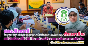 วันพุธที่ 8 พฤศจิกายน พ.ศ. 2566 เวลา 13.30 น. นางสุทิศา ซุ่นคง รองผู้อำนวยการสำนักงานส่งเสริมการเรียนรู้จังหวัดปัตตานี รักษาการในตำแหน่ง ผู้อำนวยการสำนักงานส่งเสริมการเรียนรู้จังหวัดปัตตานี มอบหมายให้ นางสาวโซเฟียนี สาและ นักวิชาการศึกษา เข้าร่วมประชุมคณะกรรมการขับเคลื่อนโครงการเพิ่มทักษะด้านอาชีพแก่นักเรียนที่ไม่ได้เรียนต่อหลังจบการศึกษาภาคบังคับประจำปีงบประมาณ พ.ศ. 2567 เพื่อกำหนดแนวทางการดำเนินงานตามปฏิทินโครงการ รายละเอียดประกอบด้วย
