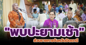 วันพุธที่ 15 พฤศจิกายน พ.ศ. 2566 เวลา 07.00 น. นางสุทิศา ซุ่นคง รองผู้อำนวยการสำนักงานส่งเสริมการเรียนรู้จังหวัดปัตตานี รักษาการในตำแหน่ง ผู้อำนวยการสำนักงานส่งเสริมการเรียนรู้จังหวัดปัตตานี เข้าร่วมกิจกรรม “พบปะยามเช้า” ประจำปี พ.ศ. 2566 ประจำเดือนพฤศจิกายน 2566 เพื่อเป็นการพบปะพูดคุย แลกเปลี่ยนความคิดเห็น ประสานความร่วมมือระหว่างหัวหน้าส่วนราชการ หัวหน้าหน่วยงาน ผู้บริหารองค์กรปกครองส่วนท้องถิ่นและผู้บริหารสถานศึกษาในจังหวัดปัตตานี โดยมีนางพาตีเมาะ สะดียามู ผู้ว่าราชการจังหวัดปัตตานี เป็นประธาน พร้อมด้วย นายเศรษฐ์ อัลยุฟรี นายกองค์การบริหารส่วนจังหวัดปัตตานี กล่าวต้อนรับในนามเจ้าภาพการจัดกิจกรรม ณ ประชุมองค์การบริหารส่วนจังหวัดปัตตานี