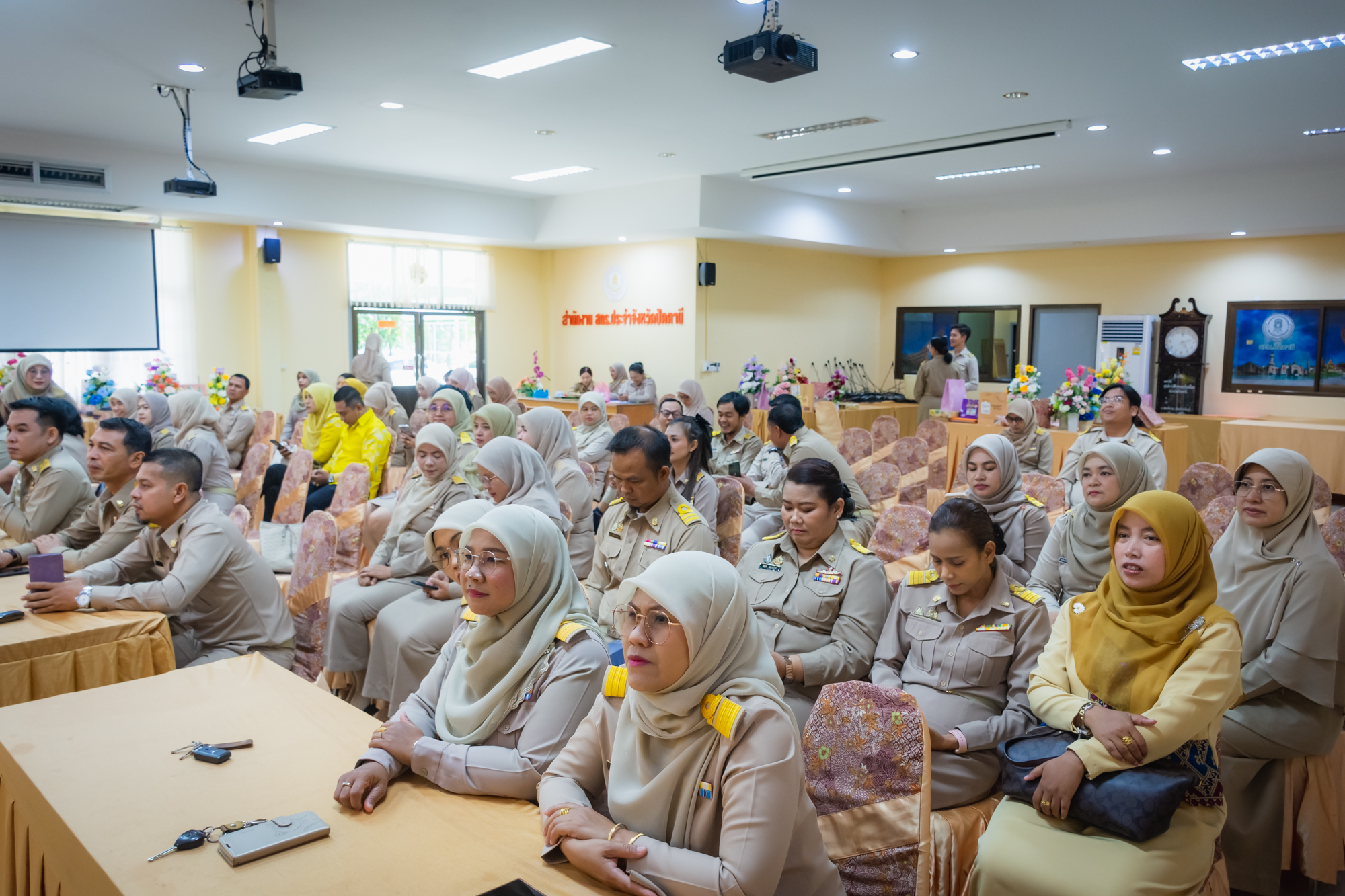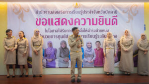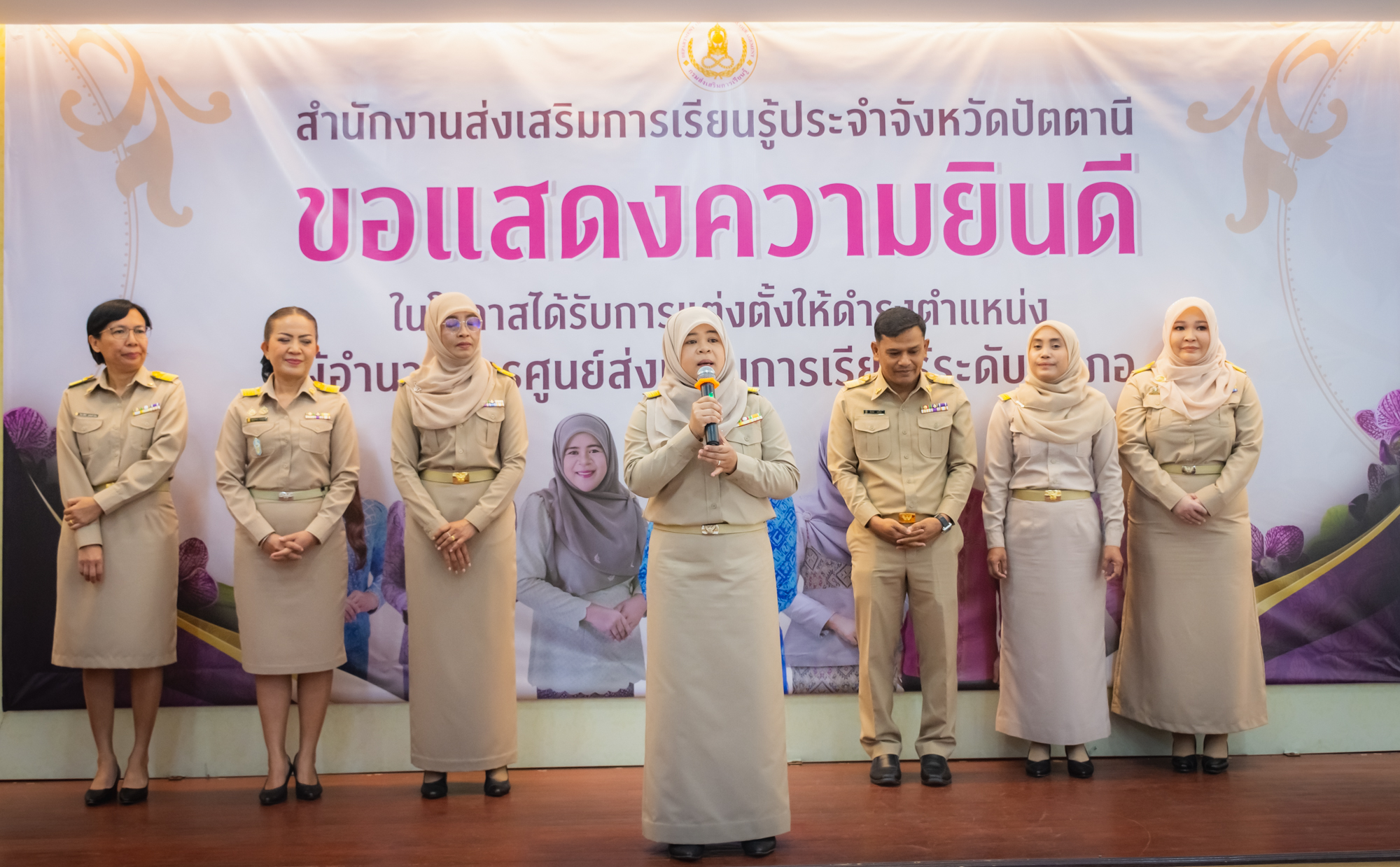 วันจันทร์ ที่ 17 มีนาคม 2568 สำนักงานส่งเสริมกาเรียนรู้ประจำจังหวัดปัตตานี จัดกิจกรรมร่วมแสดงความยินดีให้กับบุคลากรในสังกัด เนื่องในโอกาสได้รับการแต่งตั้งให้ดำรงตำแหน่ง ผู้อำนวยการศูนย์ส่งเสริมการเรียนรู้ระดับอำเภอ ทั้ง 8 ท่าน มีนางสุทิศา ซุ่นคง ผู้อำนวยการสำนักงานส่งเสริมการเรียนรู้ประจำจังหวัดปัตตานี กล่าวแสดงความยินดี พร้อมด้วย ผู้บริหาร ร่วมมอบของที่ระลึกและกล่าวแสดงความยินดี ณ ห้องประชุมสำนักงานส่งเสริมการเรียนรู้ประจำจังหวัดปัตตานี