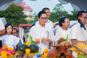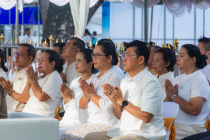 และพิธีสงฆ์ รองผู้ว่าราชการจังหวัดปัตตานีประธานในพิธีฯ จุดธูป เทียน บูชาพระรัตนตรัย เจ้าหน้าที่อาราธนาศีล พระสงฆ์ให้ศีล เจ้าหน้าที่อาราธนาพระปริตร พระสงฆ์ประกอบพิธีเจริญพระพุทธมนต์ รองผู้ว่าราชการจังหวัดปัตตานีและแขกผู้มีเกียรติถวายจตุปัจจัยไทยธรรมแด่พระภิกษุสงฆ์ พระสงฆ์อนุโมทนา ประธานกรวดน้ำ รับพร