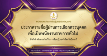 ประกาศรายชื่อผู้ผ่านการเลือกสรรบุคคลเพื่อเป็นพนักงานราชการทั่วไป