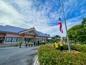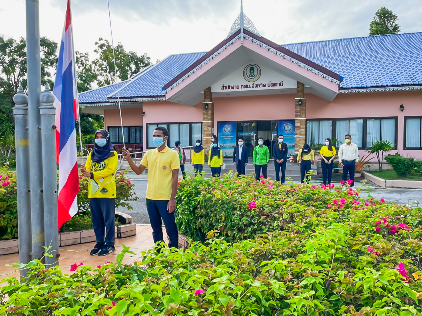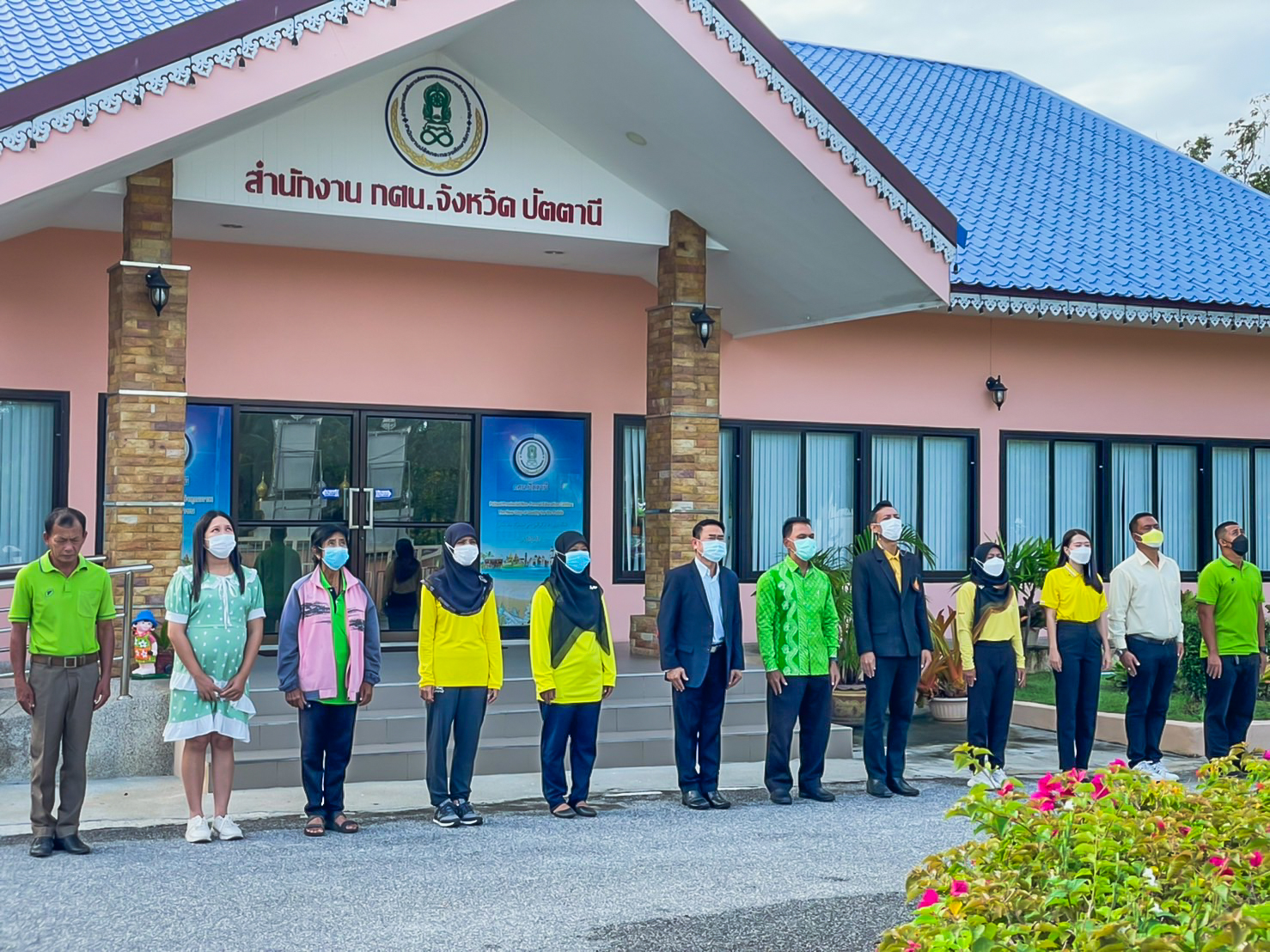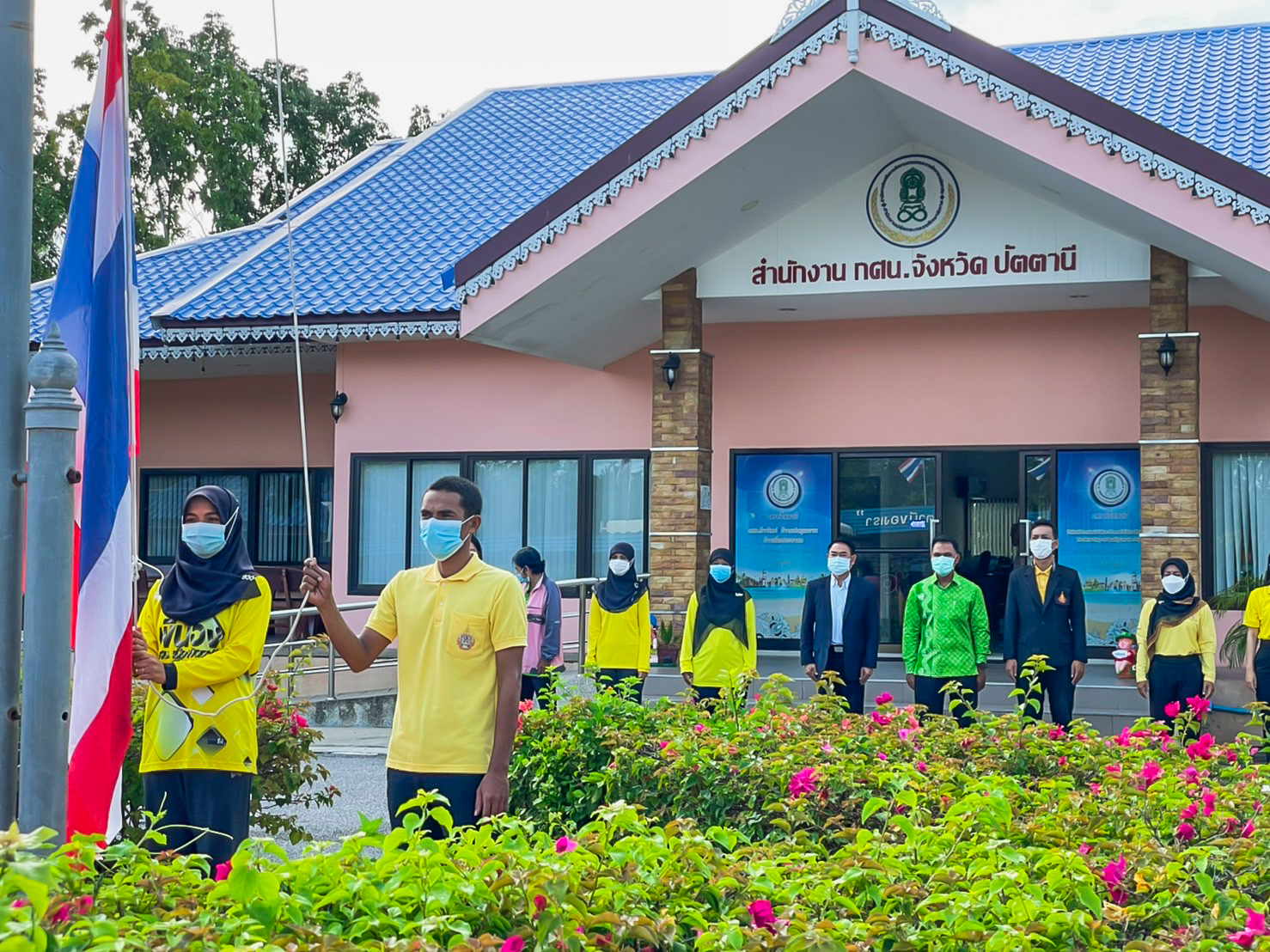 วันพุธ ที่ 19 ตุลาคม พ.ศ.2565 (08.00 น.) นายอุดร สิทธิพาที ผู้อำนวยการ สำนักงาน กศน.จังหวัดปัตตานีพร้อมด้วยผู้บริหาร ข้าราชการและบุคลากรในสังกัด ร่วมเข้าแถวร้องเพลงเคารพธงชาติและมอบนโยบายการปฏิบัติงาน ณ บริเวณหน้าสำนักงาน กศน.จังหวัดปัตตานี เพื่อแสดงออกถึงความรักชาติ ศาสนา พระมหากษัตริย์ เสริมสร้างค่านิยมและเป็น แบบอย่างที่ดี และเตรียมความพร้อมในการปฏิบัติหน้าที่ ตามสโลแกน “กศน.ปัตตานีมีมาตรฐาน สืบสานศาสตร์ พระราชา พัฒนาประชาชน”