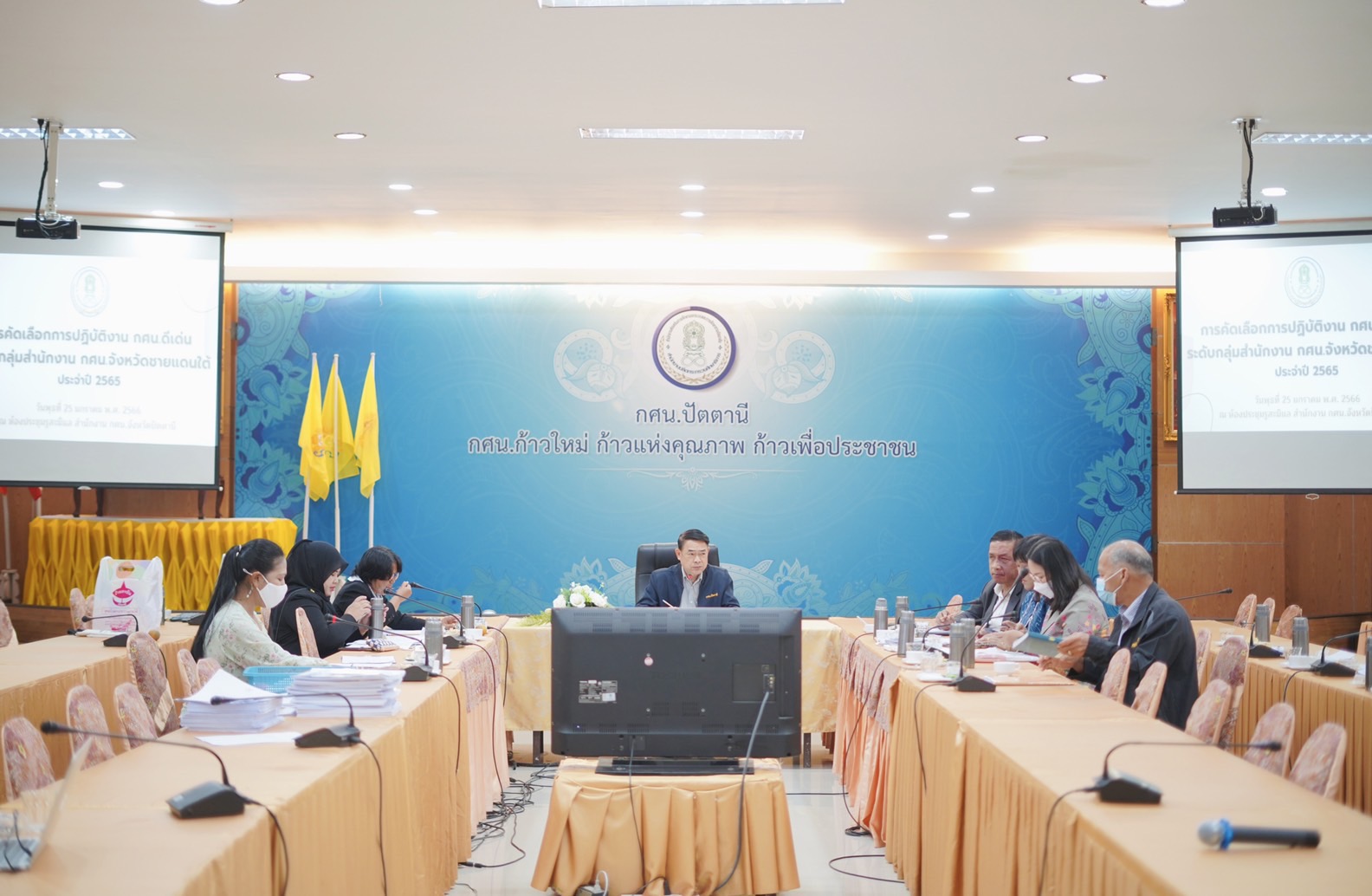 วันพุธที่ 25 มกราคม พ.ศ. 2566 นายอุดร สิทธิพาที ผู้อำนวยการสำนักงาน กศน.จังหวัดปัตตานี ปฏิบัติหน้าที่ประธานกลุ่มสำนักงาน กศน.จังหวัดชายแดนใต้ เป็นประธานการคัดเลือกการปฏิบัติงาน กศน.ดีเด่น ระดับกลุ่มสำนักงาน กศน.จังหวัดชายแดนใต้ ณ ห้องประชุมรูสะมิแล สำนักงาน กศน.จังหวัดปัตตานี