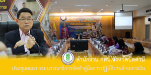 วันที่ 17 มีนาคม 2563 สำนักงาน กศน.จังหวัดปัตตานี จัดประชุมคณะกรรมบรรณาธิการจัดทำคู่มือการปฏิบัติงานด้านการเงินของหน่วยงานย่อย เพื่อคัดเลือก แก้ไข ควบคุม และแก้ไขเนื้อหาก่อนตีพิมพ์เป็นคู่มือ โดยมีนายอุดร สิทธิพาที ผู้อำนวยการสำนักงาน กศน.จังหวัดปัตตานี เป็นประธาน ณ ห้องประชุมรูสะมิแล สำนักงาน กศน.จังหวัดปัตตานี