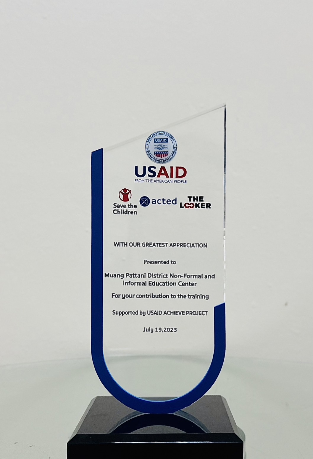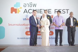 วันพุธที่ 19 กรกฎาคม พ.ศ. 2566 เวลา 11.00 น. นายอุดร สิทธิพาที ผู้อำนวยการสำนักงาน กศน.จังหวัดปัตตานี ปฏิบัติหน้าที่ผู้อำนวยการสำนักงานส่งเสริมการเรียนรู้จังหวัดปัตตานี ร่วมเป็นเกียรติในงาน “อาชีพ ACHIEVE FEST“ ซึ่งเป็นกิจกรรมเพื่อเฉลิมฉลองความสำเร็จของโครงการ USAID ACHIEVE ภายใต้ความร่วมมือกับสถาบันอาชีวศึกษา สภาเกษตรกรจังหวัดปัตตานี สถาบันพัฒนาฝีมือแรงงานจังหวัดปัตตานี ภาคธุรกิจ ตลอดจนหน่วยงานภาครัฐทั้งในระดับท้องถิ่นและระดับภูมิภาค โดยมี นางพาตีเมาะ สะดียามู ผู้ว่าราชการจังหวัดปัตตานี เป็นประธานเปิดโครงการ และมอบโล่เป็นเกียรติแก่หน่วยงานภาคีเครือข่ายที่ร่วมโครงการ USAID ACHIEVE ณ หอประชุมวิทยาลัยอาชีวศึกษาปัตตานี อำเภอเมือง จังหวัดปัตตานี